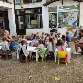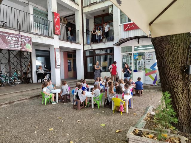 Кроз представљање књиге „Шта нам говори небо” данске ауторке Гертрудe Кејл учесници радионице упознали су се са историјом науке и астрономије. Током креативног дела су правили телескопе од папира.