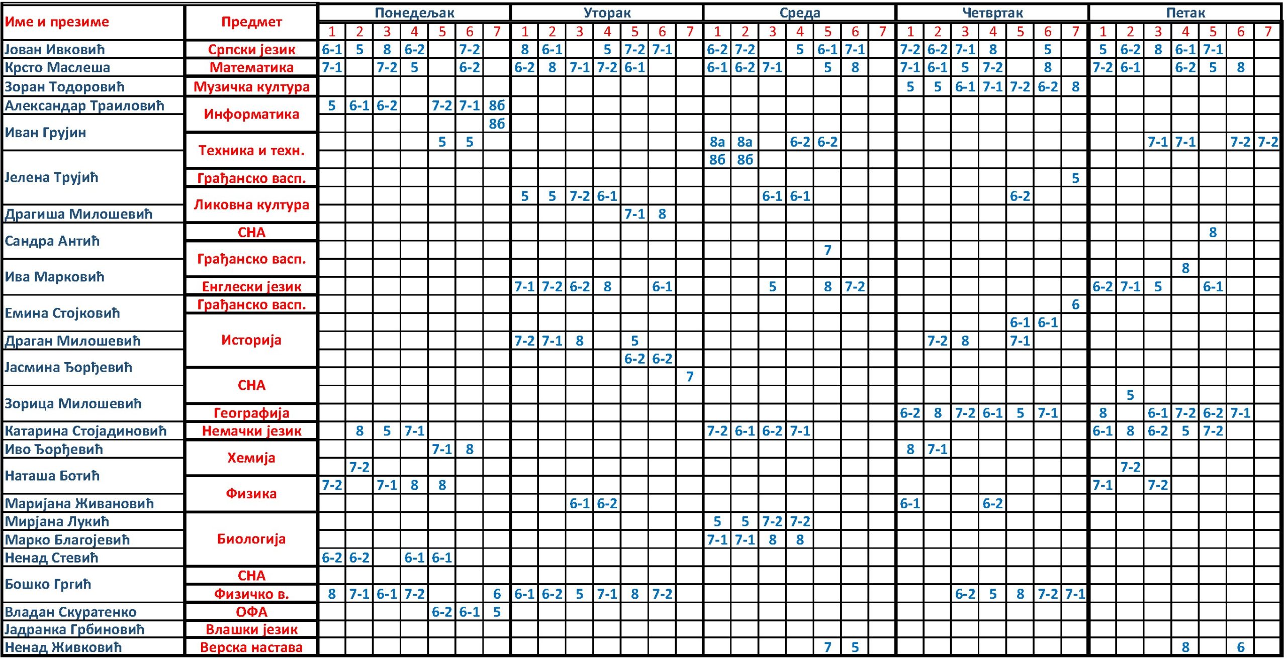 | Преузми распоред за седми разред (7-2) у ПДФ формату | ||||